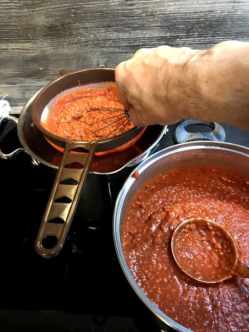 Nejdříve z šípků odstraníme stopky a následně ho umyjeme. V hrnci s vodou šípky uvaříme doměkka. Poté šípky rozmixujeme tyčovým mixérem. Šípkovou směs pak propasírujeme přes jemné sítko do připraveného čistého hrnce. Zbylé kousky, které nám zůstanou v cedníku, přendáme do nádoby s půl litrem vlažné vody. Promícháme je a opět důkladně propasírujeme.