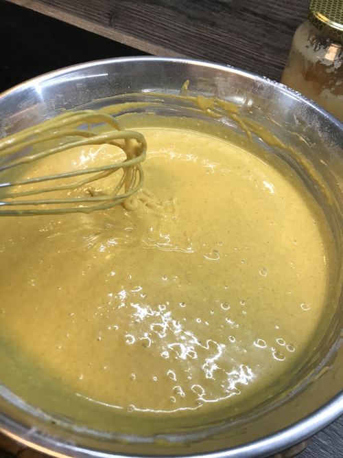 Do mísy vložíme pyré a ostatní ingredience. Naposledy přidáváme mouku a nezapomeneme vložit ani zbytek rozpuštěného másla. Mouku přidáváme po troškách a metlou důkladně vytváříme hladké těsto na lívance. Na teflonové pánvi či teflonovém lívanečníku tvoříme lívanečky, které pak smažíme bez oleje a nasucho zhruba dvě minuty z každé strany.