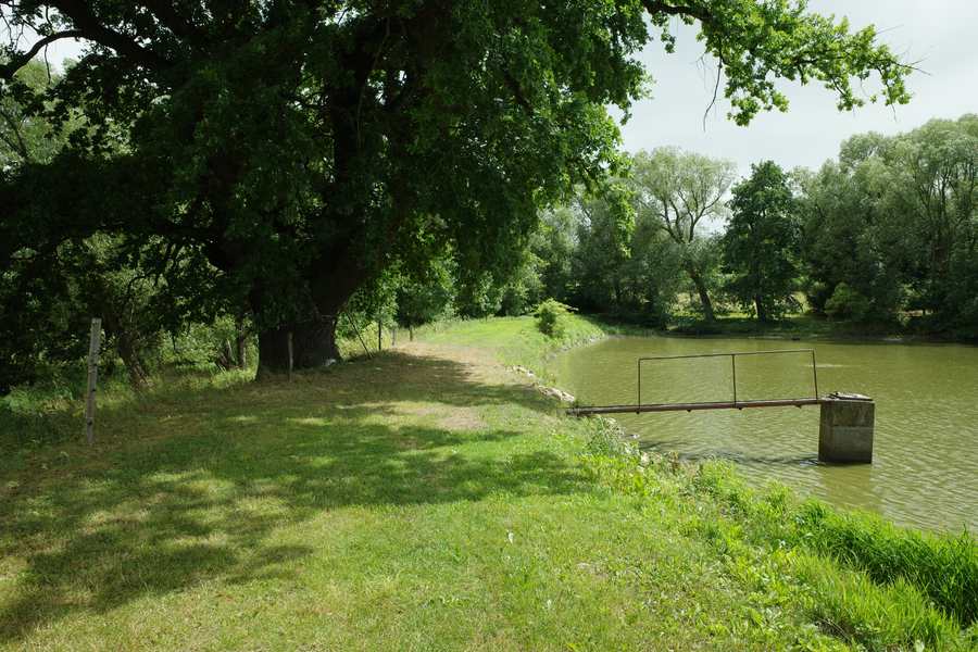 Upozorňuje, že silné kořeny stromu drží pohromadě i hráz místního rybníka. Traduje se, že dub na hrázi rybníka roste od dob jeho založení. Existenci rybníka kroniky dokládají již v roce 1764. Tehdy Čechy ještě spravovala arcivévodkyně rakouská, královna česká a uherská a markraběnka moravská Marie Terezie. Rybník přitom vždy patřil k místnímu zemědělskému dvoru, v němž byly dříve konírna i lihovar. Dnes rybník využívá zemědělská firma Klas jako chovný rybník a dobrovolní hasiči pro čerpání vody při požárech. Ostatně patronkou Ochránce, významného stromu, je starostka Okresního sdružení hasičů Benešov Dana Vilímková.
