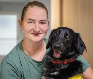 „Canisterapii vnímám jako důležitou část rekonvalescence. Kontakt nebo jen pouhá přítomnost pejska na pokoji je pro pacienta přínosná. Najednou se směje, má lepší náladu,“ popisuje canisterapeutka Vendula Krivá.